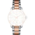 Questo cinturino Tissot è fatto in acciaio inox ed è collegato all'orologio per mezzo di perni a molla a sgancio rapido. Il cinturino ha una larghezza di 18 mm e si chiude a mezzo di chiusura deployante con bottoni e sicurezza. Il cinturino non ha montatura dritta, il che significa che questo cinturino è adatto solo per gli orologi elencati di seguito.
