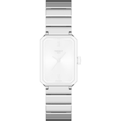 Questo cinturino Tissot è fatto in acciaio inox ed è collegato all'orologio per mezzo di perni a molla a sgancio rapido. Il cinturino ha una larghezza di 12 mm e si chiude a mezzo di chiusura a farfalla con bottoni. Il cinturino non ha montatura dritta, il che significa che questo cinturino è adatto solo per gli orologi elencati di seguito.