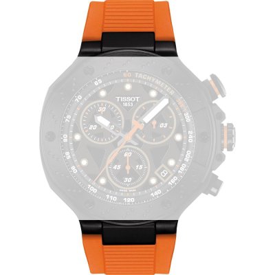 Questo cinturino Tissot è fatto in silicone ed è collegato all'orologio per mezzo di vite della sella. Il cinturino ha una larghezza di 24 mm e si chiude a mezzo di fibbia. Il cinturino non ha montatura dritta, il che significa che questo cinturino è adatto solo per gli orologi elencati di seguito.