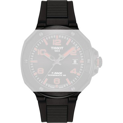 Questo cinturino Tissot è fatto in silicone ed è collegato all'orologio per mezzo di vite della sella. Il cinturino ha una larghezza di 22 mm e si chiude a mezzo di fibbia. Il cinturino non ha montatura dritta, il che significa che questo cinturino è adatto solo per gli orologi elencati di seguito.