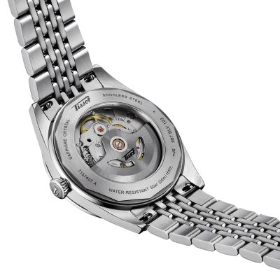 Questo orologio Tissot ha una cassa in Inox con un diametro di 39 mm ed è dotato di un cinturino in Inox. All'interno della cassa si trova un movimento di ETA e l'orologio è dotato di un cristallo di Zaffiro singolo antiriflesso.