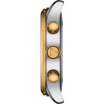 Questo orologio Tissot ha una cassa in Inox con un diametro di 45 mm ed è dotato di un cinturino in Inox. All'interno della cassa si trova un movimento di ETA e l'orologio è dotato di un cristallo di Zaffiro.
