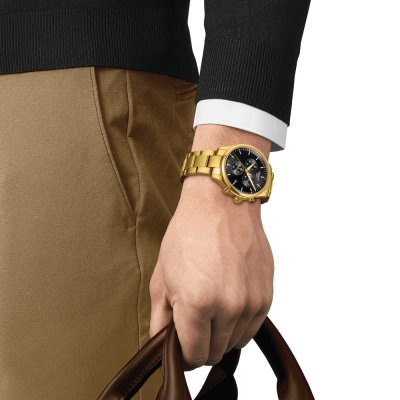 Questo orologio Tissot ha una cassa in Inox con un diametro di 45 mm ed è dotato di un cinturino in Inox. All'interno della cassa si trova un movimento di ETA e l'orologio è dotato di un cristallo di Zaffiro.