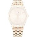Questo cinturino Tommy Hilfiger è fatto in acciaio inox ed è collegato all'orologio per mezzo di perni a molla. Il cinturino ha una larghezza di 19 mm e si chiude a mezzo di chiusura deployante con bottoni. Il cinturino non ha montatura dritta, il che significa che questo cinturino è adatto solo per gli orologi elencati di seguito.