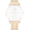 Questo cinturino Tommy Hilfiger è fatto in acciaio inox ed è collegato all'orologio per mezzo di perni a molla. Il cinturino ha una larghezza di 18 mm e si chiude a mezzo di chiusura deployante con bottoni. Il cinturino non ha montatura dritta, il che significa che questo cinturino è adatto solo per gli orologi elencati di seguito.