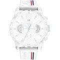 Questo cinturino Tommy Hilfiger è fatto in silicone ed è collegato all'orologio per mezzo di perni a molla. Il cinturino ha una larghezza di 22 mm e si chiude a mezzo di fibbia. Il cinturino ha un attacco dritto, il che significa che questo cinturino è adatto a tutti gli orologi di Tommy Hilfiger con attacco dritto.