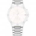 Questo cinturino Tommy Hilfiger è fatto in acciaio inox ed è collegato all'orologio per mezzo di perni in acciaio. Il cinturino ha una larghezza di 20 mm e si chiude a mezzo di chiusura deployante con bottoni. Il cinturino non ha montatura dritta, il che significa che questo cinturino è adatto solo per gli orologi elencati di seguito.