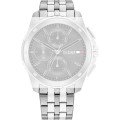 Questo cinturino Tommy Hilfiger è fatto in acciaio inox ed è collegato all'orologio per mezzo di perni a molla. Il cinturino ha una larghezza di 22 mm e si chiude a mezzo di chiusura deployante con bottoni. Il cinturino non ha montatura dritta, il che significa che questo cinturino è adatto solo per gli orologi elencati di seguito.