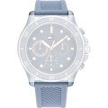 Questo cinturino Tommy Hilfiger è fatto in silicone ed è collegato all'orologio per mezzo di perni a molla. Il cinturino ha una larghezza di 20 mm e si chiude a mezzo di fibbia. Il cinturino ha un attacco dritto, il che significa che questo cinturino è adatto a tutti gli orologi di Tommy Hilfiger con attacco dritto.