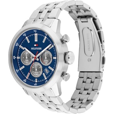 Questo orologio Tommy Hilfiger ha una cassa in Inox con un diametro di 43 mm ed è dotato di un cinturino in Inox. All'interno della cassa si trova un movimento di Seiko Instruments Inc. e l'orologio è dotato di un cristallo di Minerale.