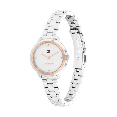 Questo orologio Tommy Hilfiger ha una cassa in Inox con un diametro di 26 mm ed è dotato di un cinturino in Inox. All'interno della cassa si trova un movimento di Seiko Instruments Inc. e l'orologio è dotato di un cristallo di Minerale.