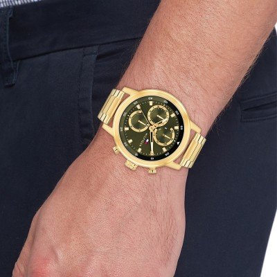 Questo orologio Tommy Hilfiger ha una cassa in Inox con un diametro di 46 mm ed è dotato di un cinturino in Inox. All'interno della cassa si trova un movimento di Seiko Instruments Inc. e l'orologio è dotato di un cristallo di Minerale.
