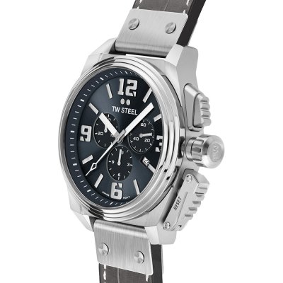Questo orologio TW Steel ha una cassa in Inox con un diametro di 46 mm ed è dotato di un cinturino in Cuoio su silicone. All'interno della cassa si trova un movimento di Ronda e l'orologio è dotato di un cristallo di Minerale.