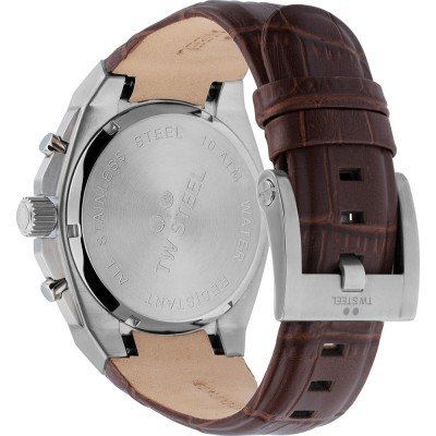 Questo orologio TW Steel ha una cassa in Inox con un diametro di 44 mm ed è dotato di un cinturino in Pelle. All'interno della cassa si trova un movimento di Miyota e l'orologio è dotato di un cristallo di Cristallo rivestito in zaffiro.