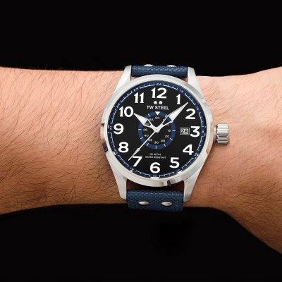 Questo orologio TW Steel ha una cassa in Inox con un diametro di 48 mm ed è dotato di un cinturino in Tessuto su pelle. All'interno della cassa si trova un movimento di Miyota e l'orologio è dotato di un cristallo di Minerale indurito.