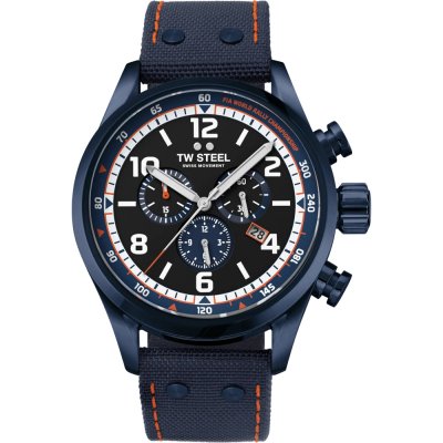 Questo orologio TW Steel ha una cassa in Inox con un diametro di 48 mm ed è dotato di un cinturino in Tessuto su pelle. All'interno della cassa si trova un movimento di Ronda e l'orologio è dotato di un cristallo di Zaffiro singolo antiriflesso.