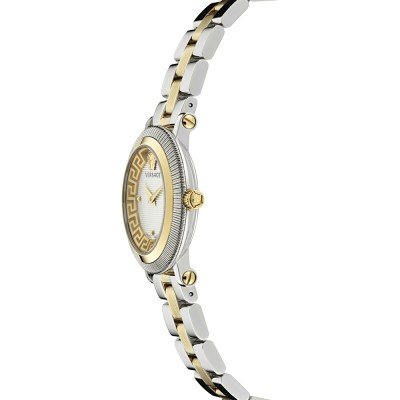 Questo orologio Versace ha una cassa in Inox con un diametro di 35 mm ed è dotato di un cinturino in Inox. All'interno della cassa si trova un movimento di Ronda e l'orologio è dotato di un cristallo di Zaffiro.