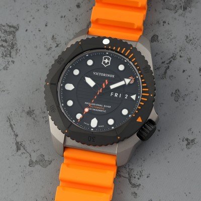 Gli orologi al quarzo Victorinox Dive Pro sono disponibili sia in acciaio che in titanio e con una scelta di cinturini diversi, dal caucciù dai colori vivaci al pratico paracord. In comune hanno il potente movimento svizzero al quarzo Ronda, la certificazione ISO 6425, l'impermeabilità 30 ATM, la lunetta girevole unidirezionale e gli indici e le lancette ad alta visibilità. L'orologio è progettato, prodotto e testato nello stabilimento Victorinox di Delémont.