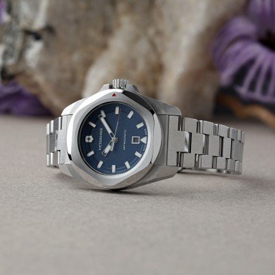 Questo orologio Victorinox ha una cassa in Inox con un diametro di 32 mm ed è dotato di un cinturino in Inox. All'interno della cassa si trova un movimento di Ronda e l'orologio è dotato di un cristallo di Zaffiro.