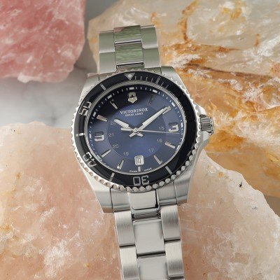 Questo orologio Victorinox ha una cassa in Inox con un diametro di 43 mm ed è dotato di un cinturino in Inox. All'interno della cassa si trova un movimento di Ronda e l'orologio è dotato di un cristallo di Zaffiro.