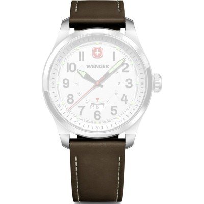 Questo cinturino Wenger è fatto in pelle ed è collegato all'orologio per mezzo di perni a molla. Il cinturino ha una larghezza di 22 mm e si chiude a mezzo di fibbia. Il cinturino ha un attacco dritto, il che significa che questo cinturino è adatto a tutti gli orologi di Wenger con attacco dritto.