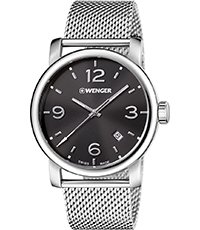 Questo orologio Wenger ha una cassa in acciaio inox con un diametro di 41 mm ed è dotato di un cinturino in Metallo. All'interno ha un movimento quarzo per orologi di qualità ed è finito con un vetro di tipo .