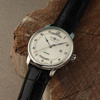 Questo orologio Zeppelin ha una cassa in Inox con un diametro di 40 mm ed è dotato di un cinturino in Pelle. All'interno della cassa si trova un movimento di Miyota e l'orologio è dotato di un cristallo di K1 Minerale.