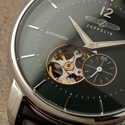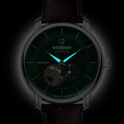 Questo orologio Zeppelin ha una cassa in Inox con un diametro di 40 mm ed è dotato di un cinturino in Pelle. All'interno della cassa si trova un movimento di Miyota e l'orologio è dotato di un cristallo di K1 Minerale.