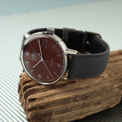 Questo orologio Zeppelin ha una cassa in Inox con un diametro di 40 mm ed è dotato di un cinturino in Tessuto. All'interno della cassa si trova un movimento di Miyota e l'orologio è dotato di un cristallo di K1 Minerale.