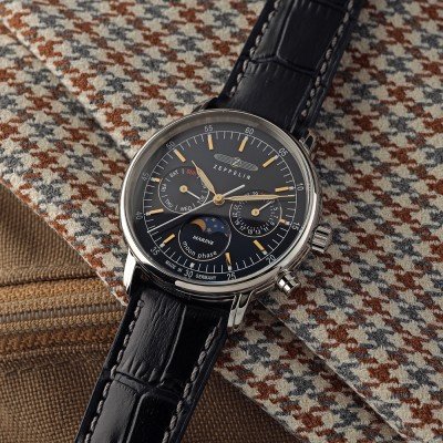 Questo orologio Zeppelin ha una cassa in Inox con un diametro di 36 mm ed è dotato di un cinturino in Pelle. All'interno della cassa si trova un movimento di Ronda e l'orologio è dotato di un cristallo di K1 Minerale.