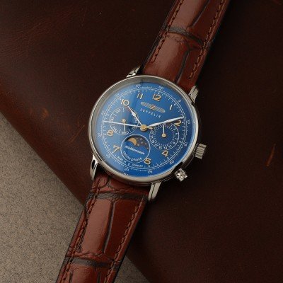 Questo orologio Zeppelin ha una cassa in Inox con un diametro di 36 mm ed è dotato di un cinturino in Pelle. All'interno della cassa si trova un movimento di Ronda e l'orologio è dotato di un cristallo di K1 Minerale.