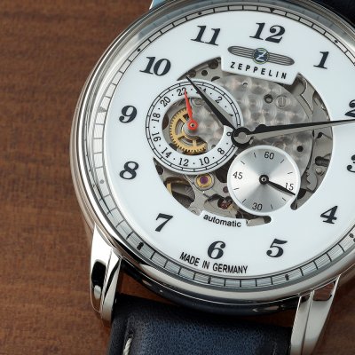 Questo orologio Zeppelin ha una cassa in Inox con un diametro di 42 mm ed è dotato di un cinturino in Pelle. All'interno della cassa si trova un movimento di Miyota e l'orologio è dotato di un cristallo di K1 Minerale.